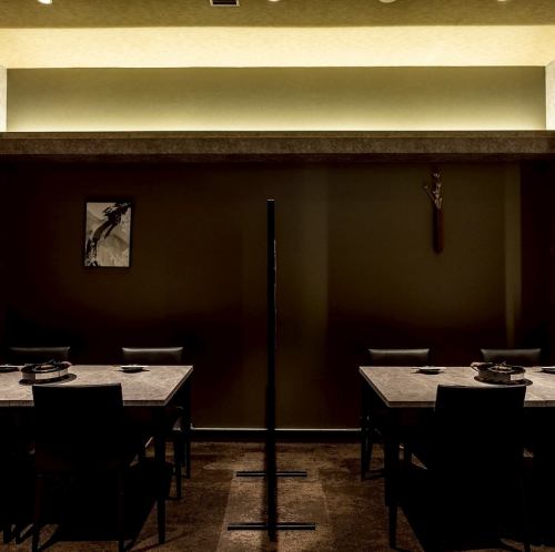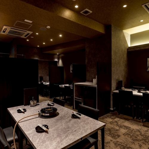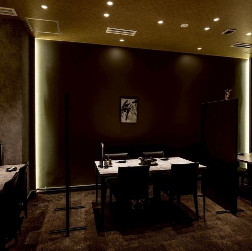 仕切りを使って全席半個室としてご利用頂けます。2名様から6名様のテーブル席はもちろん、それ以上のご人数でもお席を繋げて最大32名様(貸切)にてご対応可能です。シックで高級感のある店内は、接待や女子会、普段使いのご宴会、デートなどのご利用にも最適です。.広々としたゆったり空間、お席で電子タバコも可。